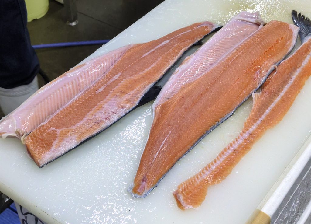 北海道産の時鮭を先輩Мに三枚おろにしてもらいました!